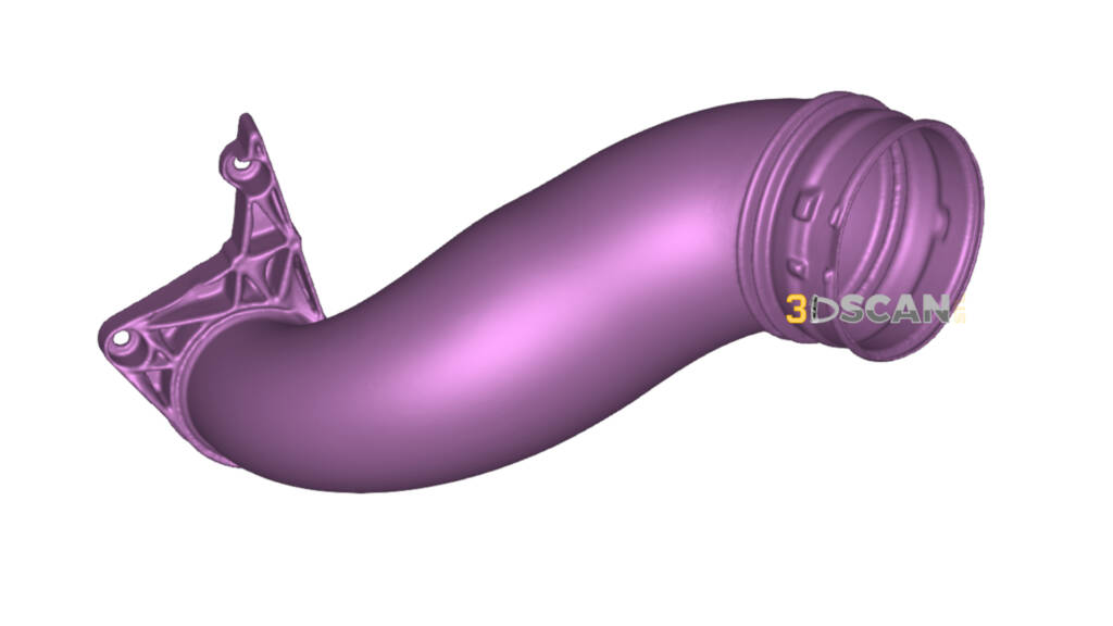 A local fire fighter came to us with a project whereby he is going to modify and replace his factory intake components with custom printed parts. His goal is to dramatically increase engine horsepower. To that end, he needed the current parts scanned and modified so as to have a starting point for this customization. The result, below, turned out very well. The green models were created from the original scans which included an orifice along the tube. The purple models are are the final result with the orifice removed.