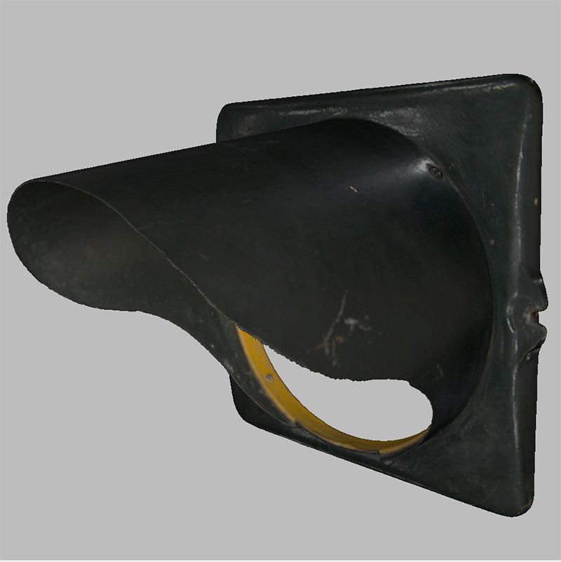 This is the face and hood of the Crouse Hinds traffic signal previously posted. Scanned with the Artec Eva and processed in Artec Studio, it is a faithful representation of the antique traffic light. Once all of the components were scanned, they were reverse engineered in SolidWorks to create 100% accurate scale replicas for collectors.