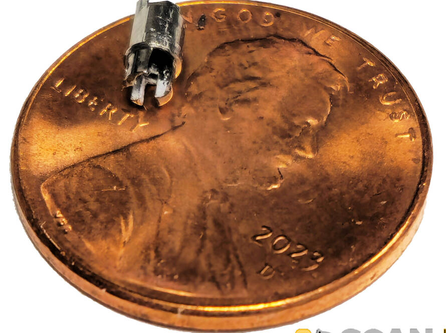 A new client came to us with several very, very tiny devices used in medical devices. They needed accurate measurements of these objects for their business. Thanks to the UltraScan-Inspec scanner, we were able to capture the object in extreme detail. In the photo below, the penny is included for a size reference.