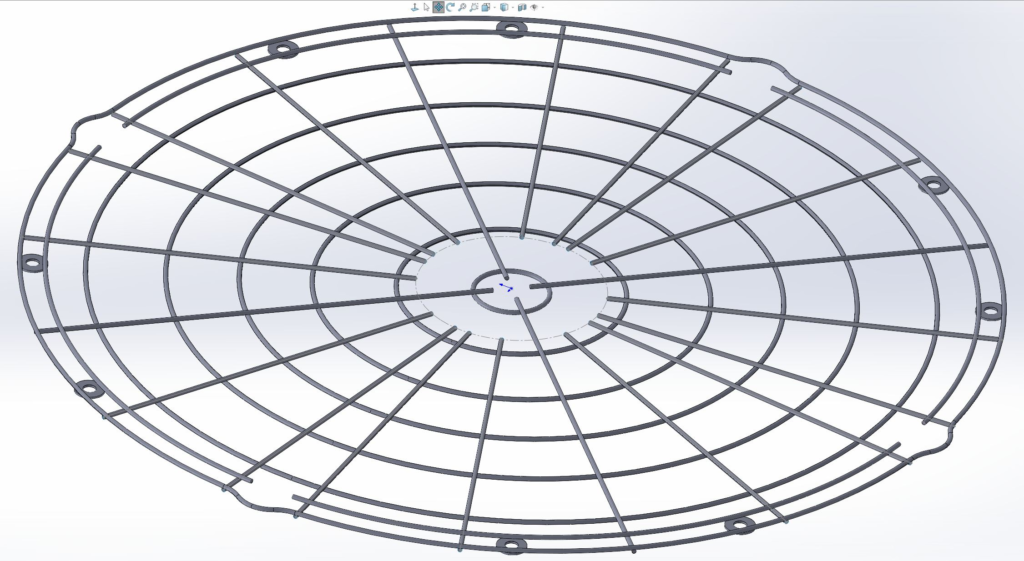 This is the hand guard that covers the radiator fan on the top of a locomotive. The model looks blobby due to the highly reflective surface and small surface area which makes scanning difficult. However, all that was required was the the basic shape with which a new CAD drawing could be created. Mission Accomplished