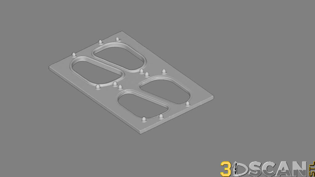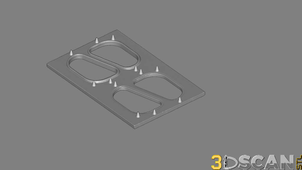 This is a small section of a long, flat, die used in the production of Fancy Feast cat food containers. The package manufacturer wanted the model for deviation analysis. One pair is without the silicone rubber gaskets for comparison. Scanned with the Artec Eva and converted to a solid object for use in CAD, such as SolidWorks, Fusion 360 and Autocad.