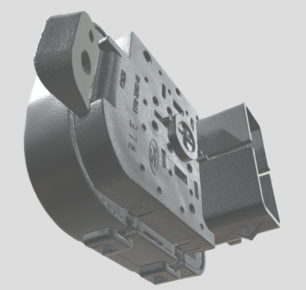 This was scanned with the AutoScan Inspec. This part, E7T8-7Z155-AB, is fitted to the dash panel with two screws from the back. It was scanned in order to 3D print an adapter with which to install a digital OLED volt meter. By doing so, the installation looks factory installed.